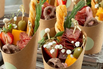 Looking for something unique? Our custom cups and tables enable you to select your favorite items, creating a truly personalized experience. Whether it’s a mix of cheeses, charcuterie, or sweets, we’re here to bring your vision to life. Let us help you design a table, large boards, or individual cups that reflect your taste and style for your next event.